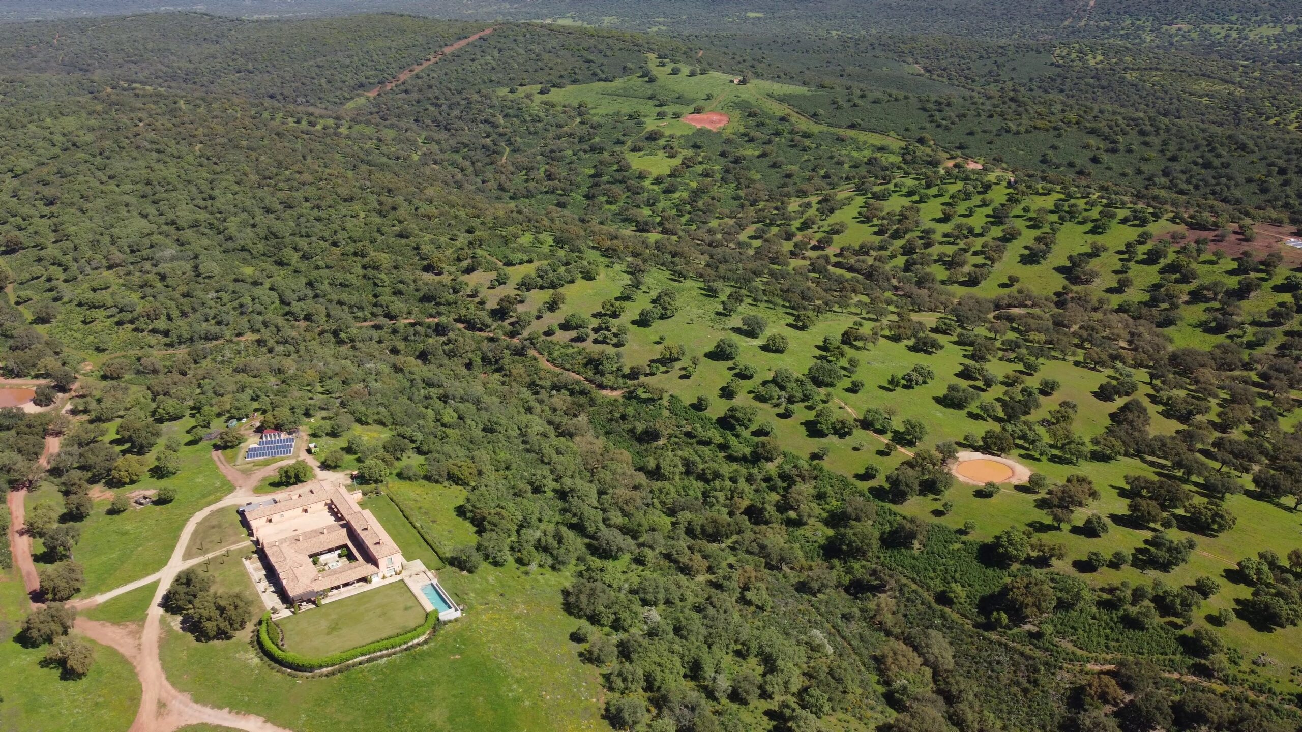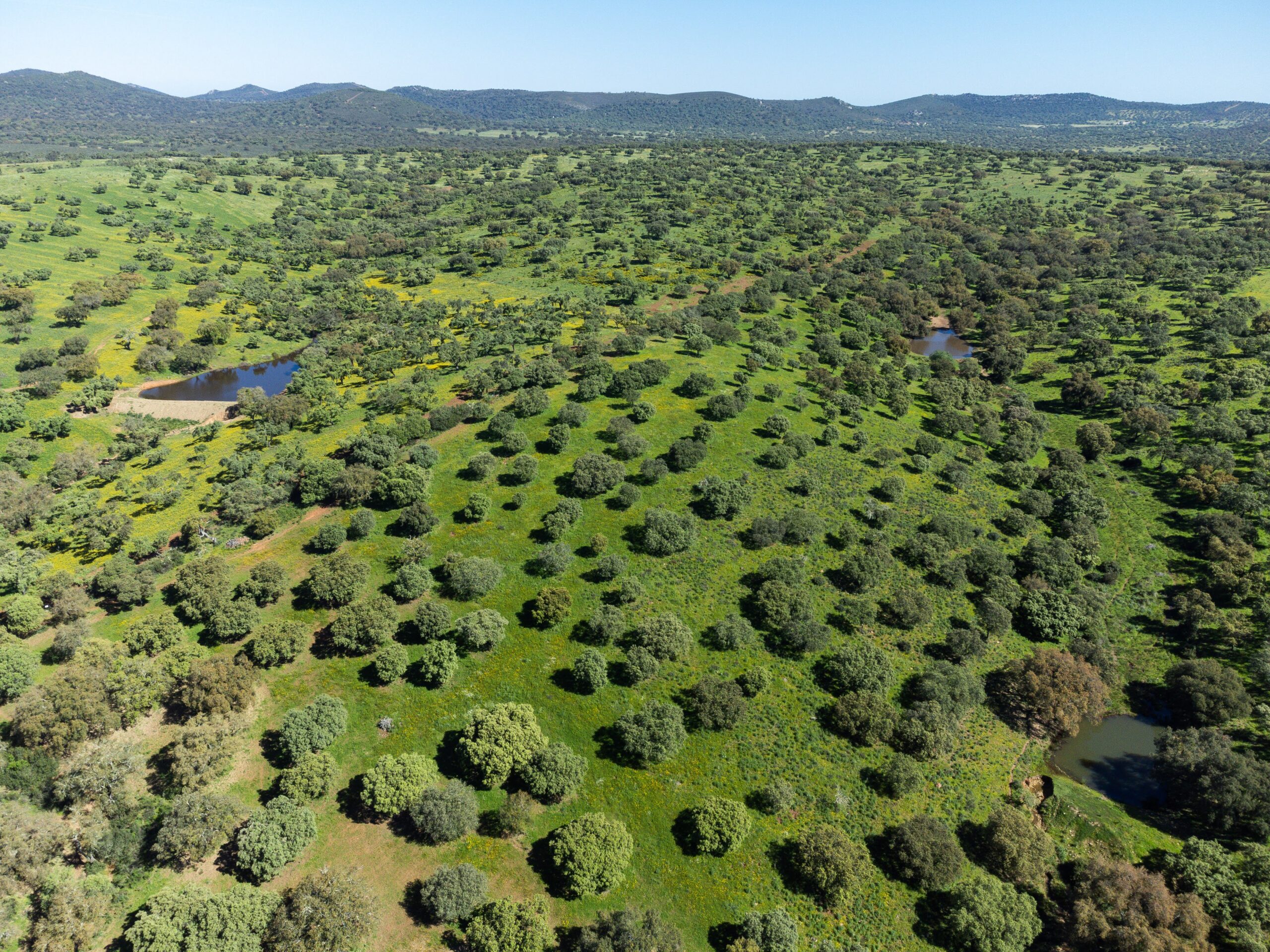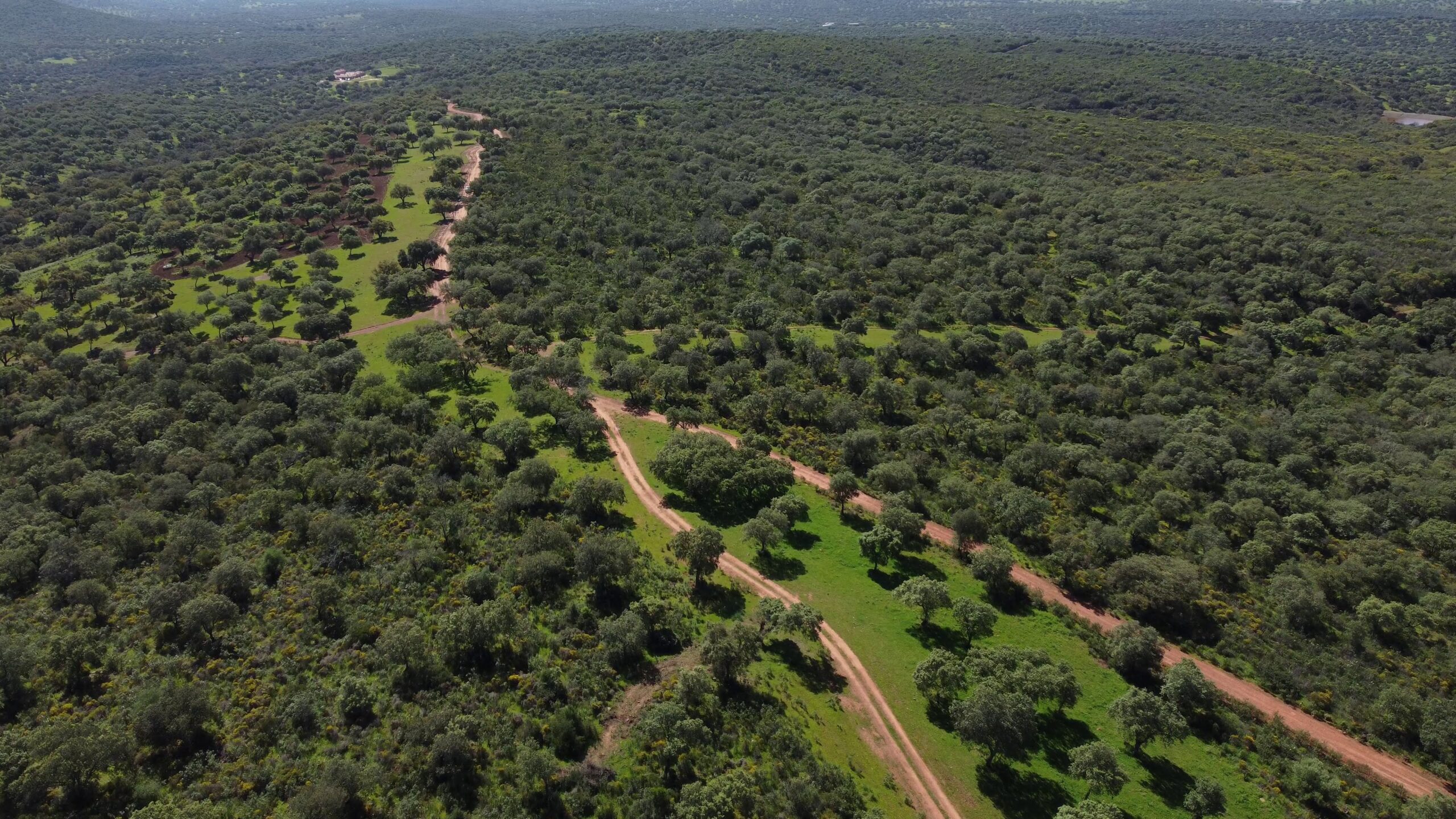 Finca en Extremadura de 920 hectáreas, con aproximadamente 70% de dehesa limpia con un gran número de encinas y alcornoques y 30% de monte mediterráneo con lentisco, acebuches y madroños.
