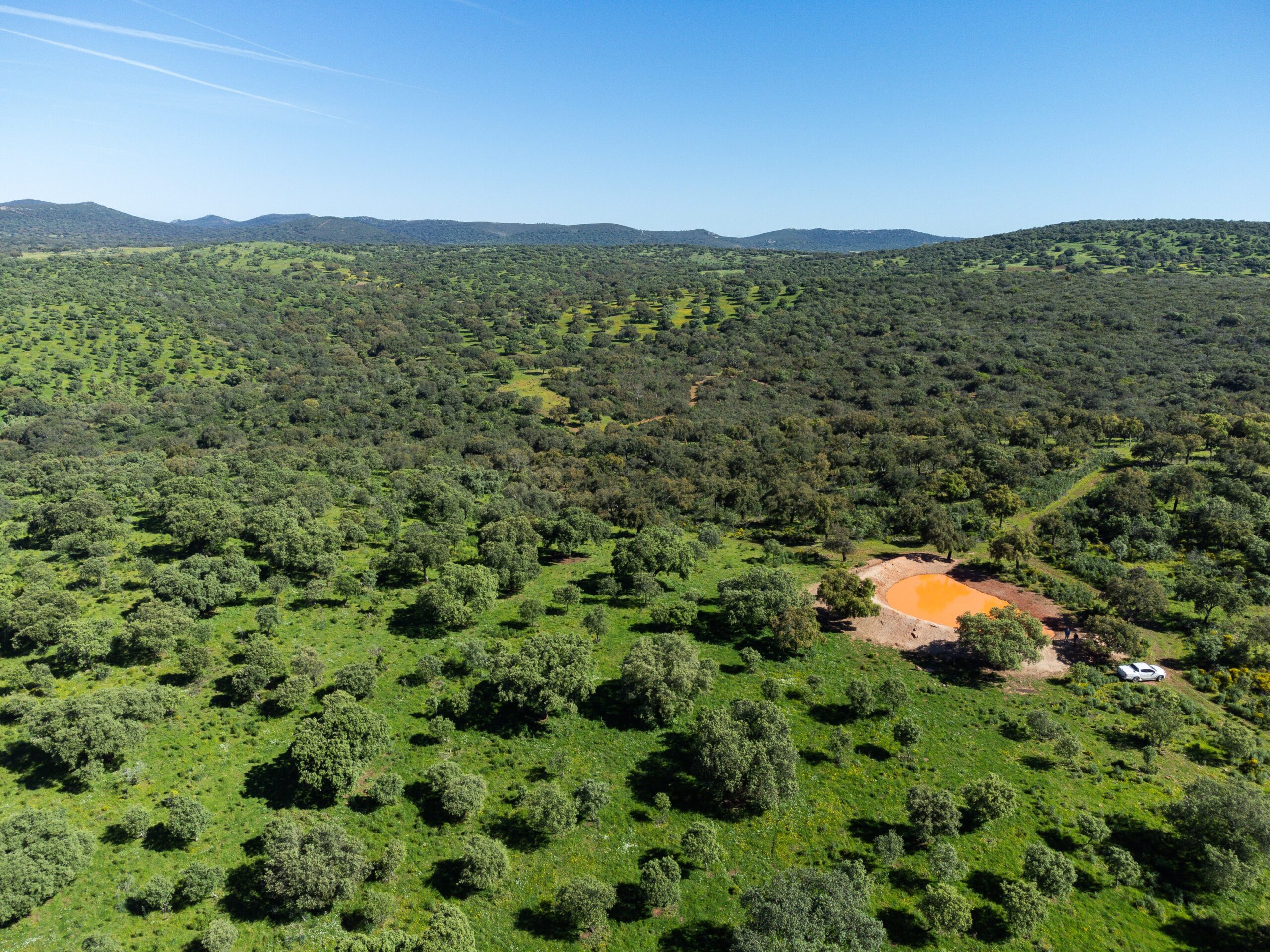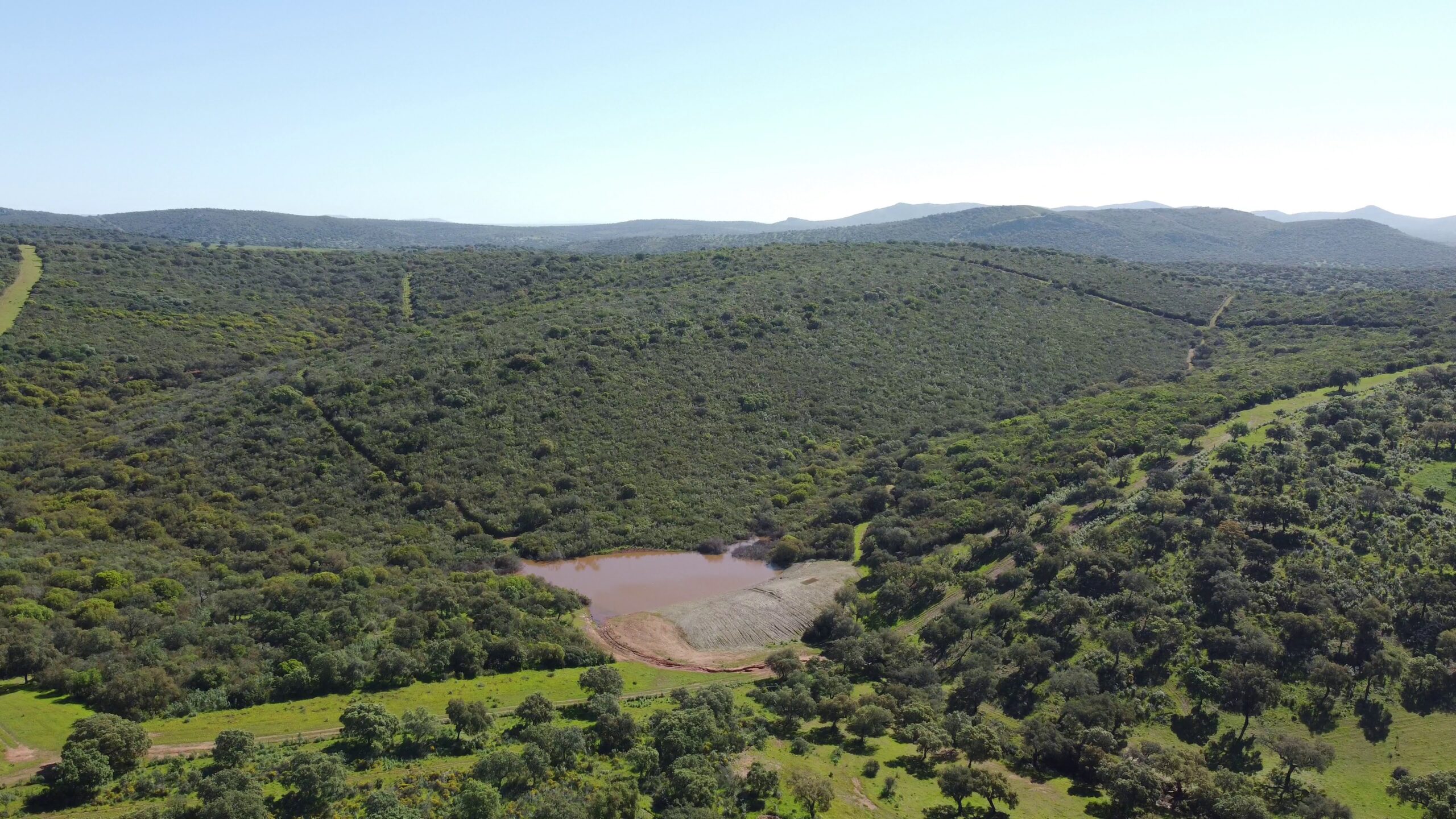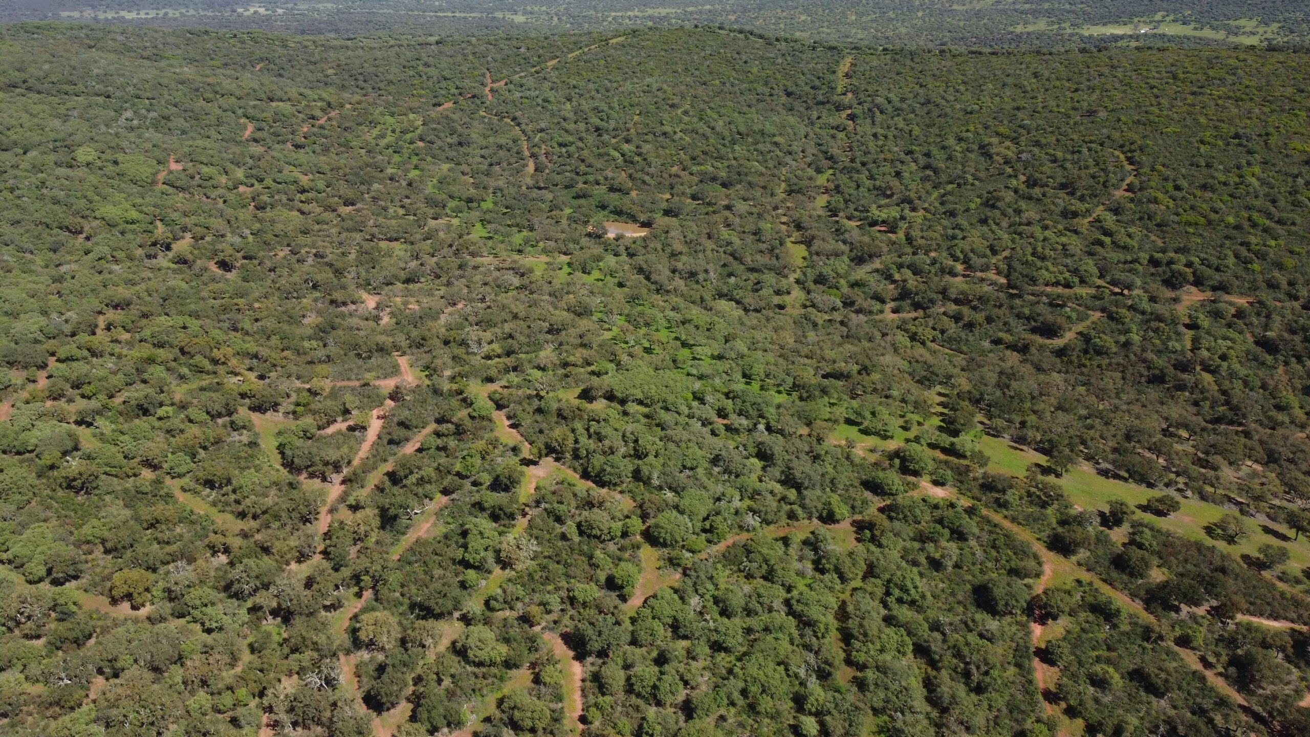 Finca en Extremadura de 920 hectáreas, con aproximadamente 70% de dehesa limpia con un gran número de encinas y alcornoques y 30% de monte mediterráneo con lentisco, acebuches y madroños.