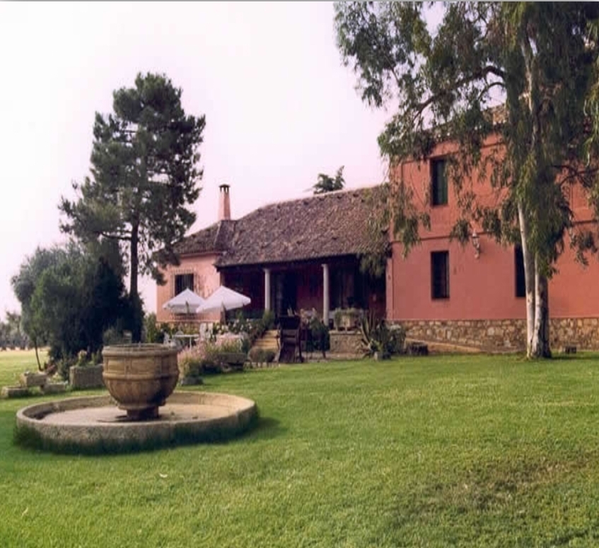 La finca cuenta con una casa de 730 m2, de 12 habitaciones, rodeada de un cortijo y jardines.